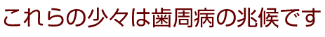 歯周病は、一本だけでなく多数の歯が一度にかかることがほとんどで、虫歯と違い、痛みなどの自覚症状がなく進行します。 長い間、歯周病のサインを見逃して放置し、歯がぐらぐらになってから来院しても、抜歯しか手段が無いこともしばしばで、いきなり歯を失ってしまうことになりかねません。